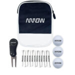 CADDI-Tasche in der Größe 130 x 150 mm aus strukturiertem, gefüttertem Polyester Twill (Köperstoff) mit Reißverschluss und vollfarbigem Digitalaufdruck auf der Vorderseite ist in zwei Farben erhältlich, beide mit schwarzen Gummireißverschlüssen. Die Druckfläche ist 80 x 80 mm. Wir haben acht Inhaltskombinationen mit Tees, Pitchgabeln und Ballmarker. Preise finden Sie unten.
